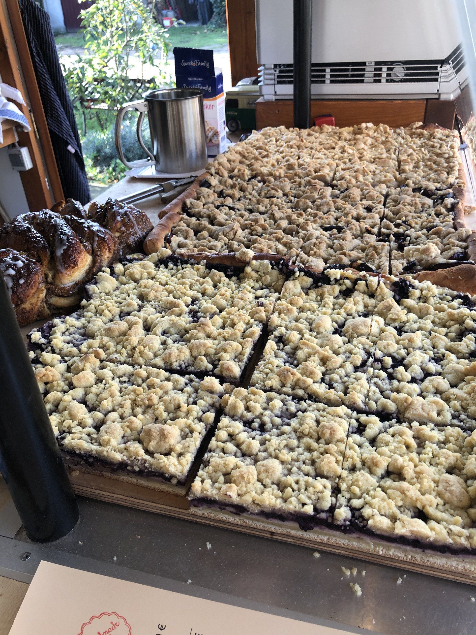 Wir bieten hausgemachte Köstlichkeiten aus unserem Steinbackofen, in französisch -schwäbischer Tradition, sowie hausgemachten Blechkuchen und hin und wieder selbstgebackenes Brot und Brötchen, an.